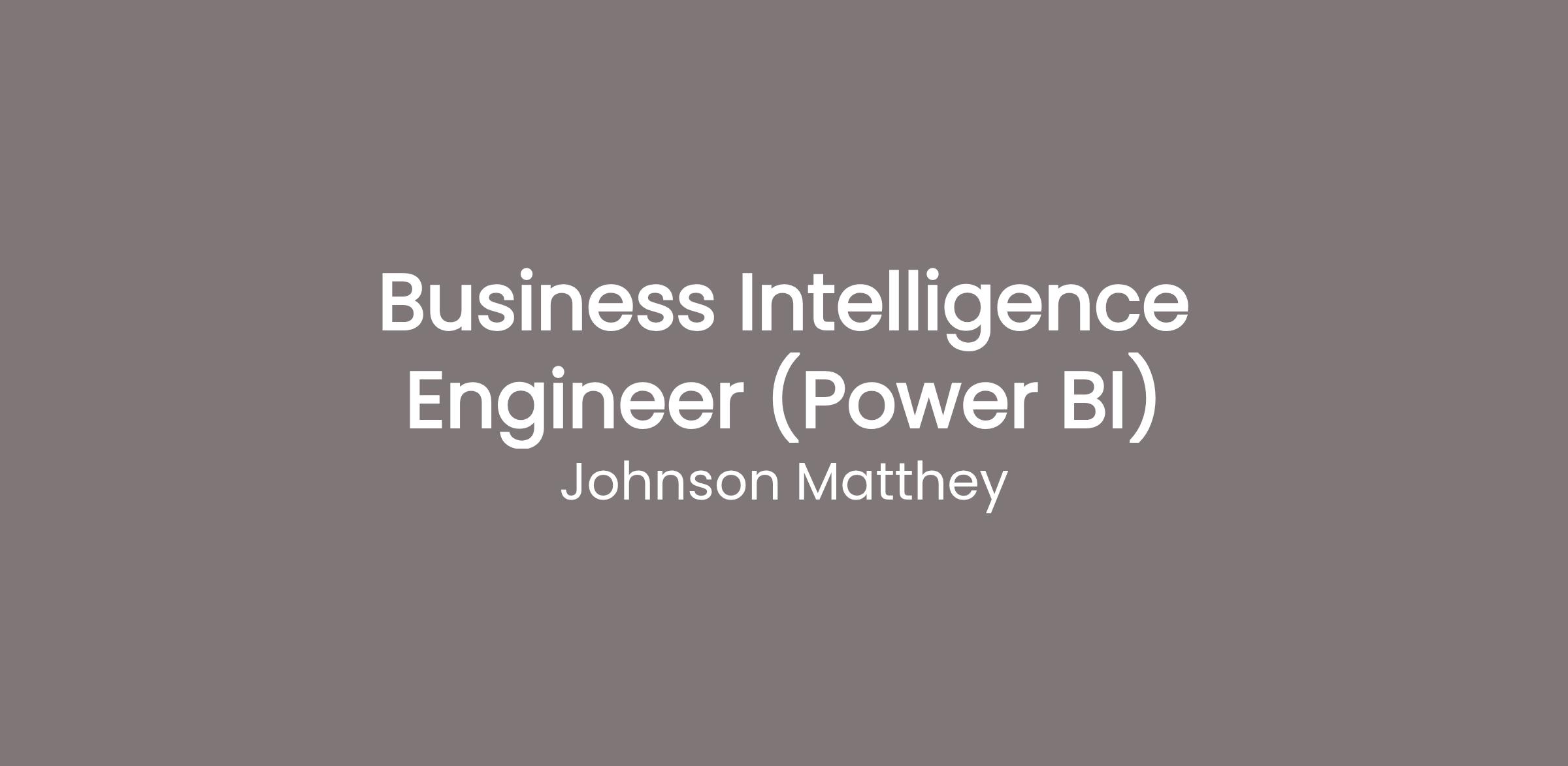 World-changing careers, enabled by Johnson Matthey. With more than 200 years history, join us and help to accelerate the transition to net-zero! As a Business Intelligence Engineer (Power BI), you’ll contribute to JM’s mission as a world leader in sustainable technology, transforming energy and reducing carbon emissions for a cleaner, brighter future.