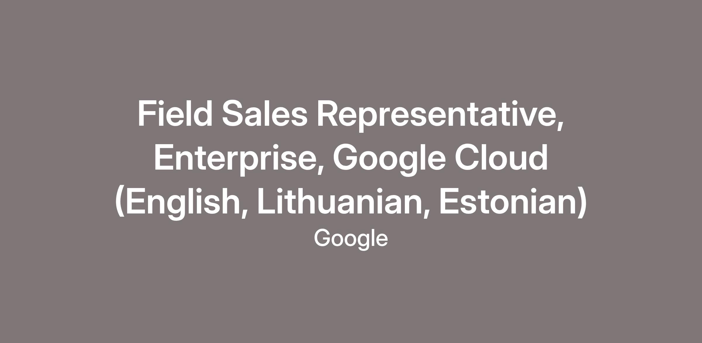 As a Field Sales Representative (FSR) within our Enterprise organization, you will manage the growth strategy for accounts across the ecosystem. You will leverage experience engaging with executives to build on existing relationships, establish relationships in new areas, and act as a business partner to understand our customer's issues and goals. You will advocate the innovative power of our products and solutions to make organizations more collaborative, and mobile. Google Cloud's unique capabilities empower enterprises to address critical needs in growth, and global expansion, while also offering advanced technologies that drive differentiation, customer acquisition, and business acceleration.