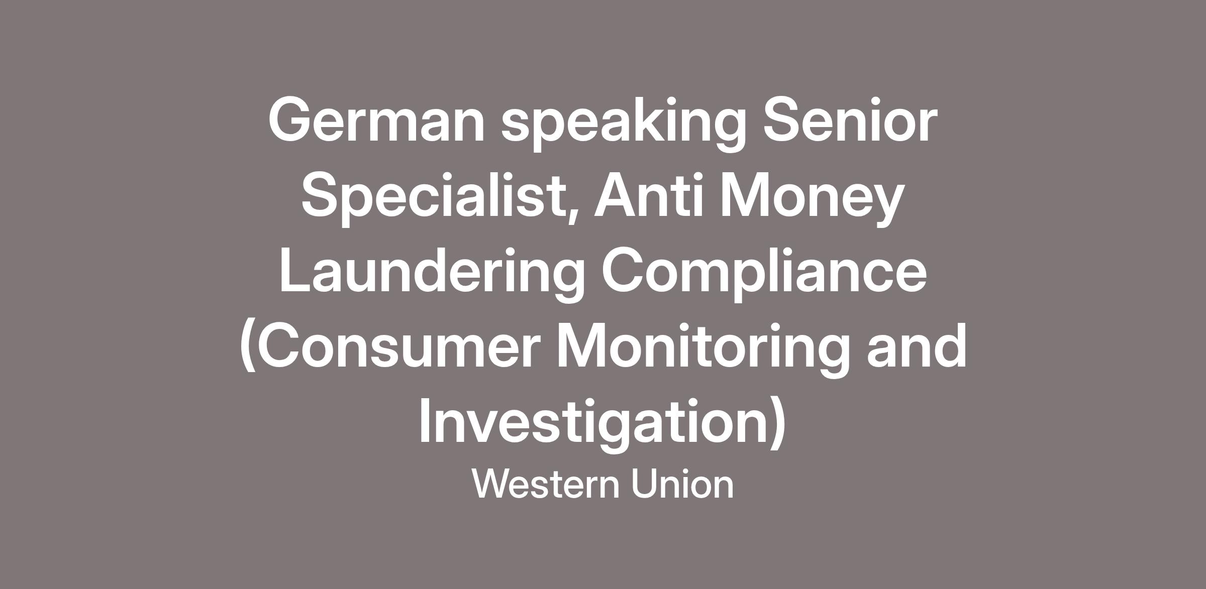 Are you looking to play a key role in helping tackle money laundering and other financial crimes? Are you ready to unleash your potential in a global business that is committed to moving money for the better? Are you interested in joining a globally diverse organization where our unique contributions are recognized and celebrated, allowing each of us to thrive? Then it’s time to join Western Union as a Senior Specialist, Anti Money Laundering Compliance (Consumer Monitoring and Investigation).