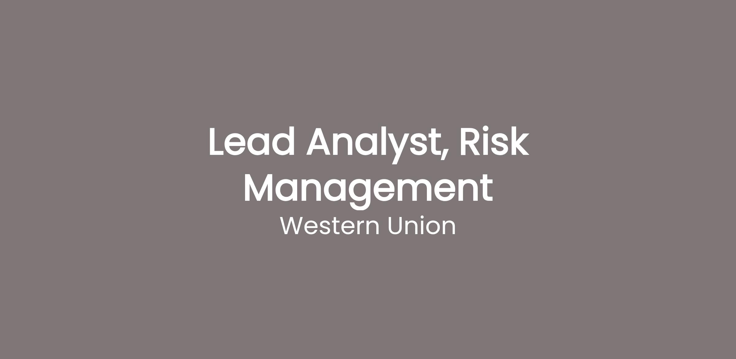 Are you a passionate compliance risk professional with an analytical and data-driven mindset? Are you excited by an opportunity to join an incredibly strong, unified Risk Advisory team? Are you interested in joining a globally diverse organization where our unique contributions are recognized and celebrated, allowing each of us to thrive? Then it’s time to join Western Union as a Lead Analyst, Risk Management.