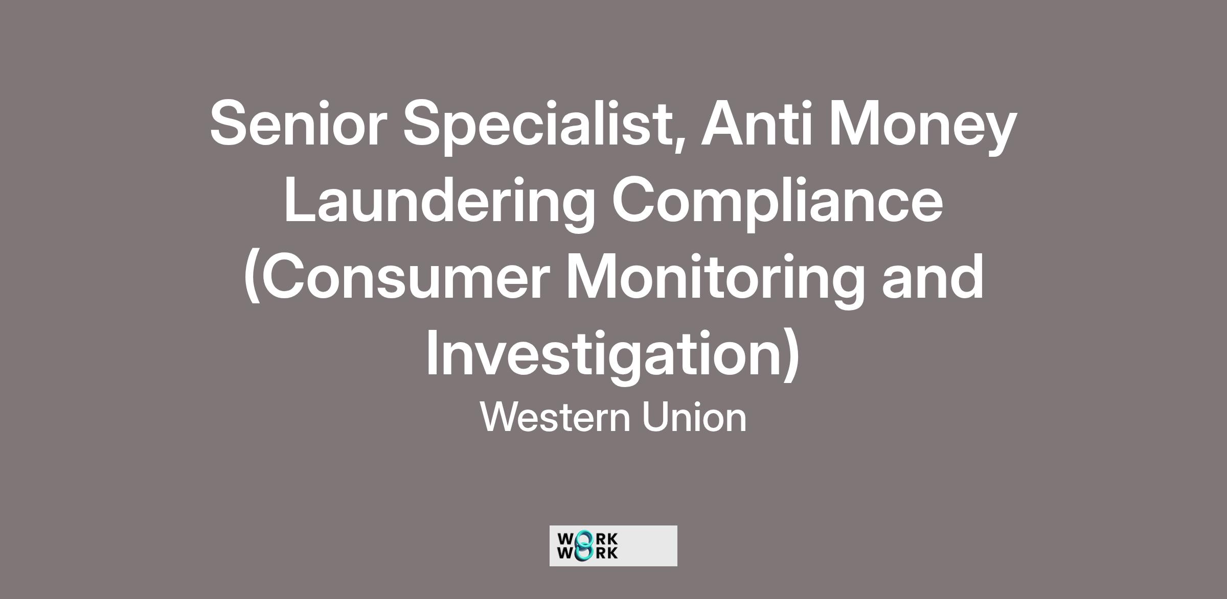 Are you looking to play a key role in helping tackle money laundering and other financial crimes? Are you ready to unleash your potential in a global business that is committed to moving money for the better? Are you interested in joining a globally diverse organization where our unique contributions are recognized and celebrated, allowing each of us to thrive? Then it’s time to join Western Union as a Senior Specialist, Anti Money Laundering Compliance (Consumer Monitoring and Investigation).