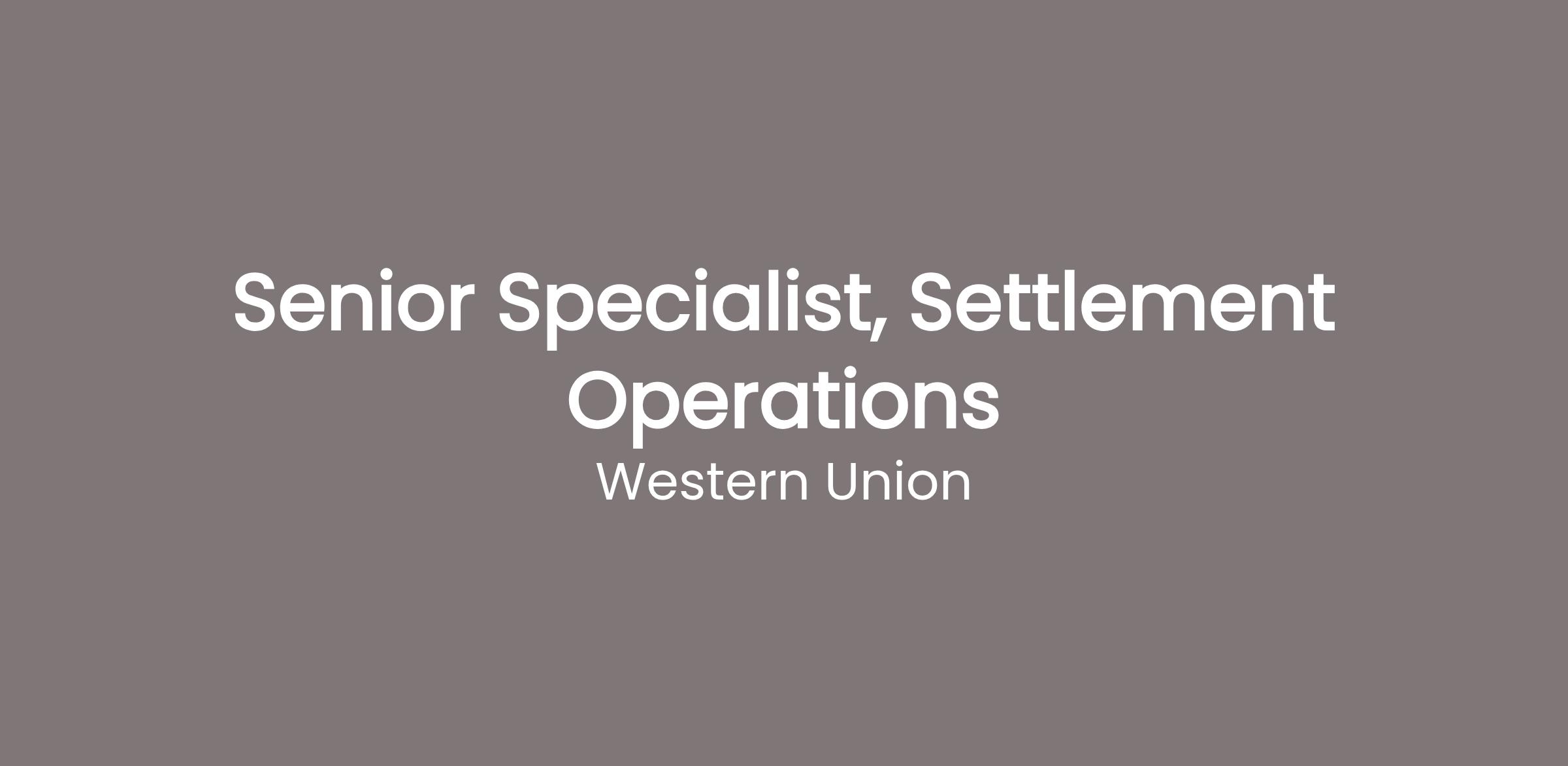 Are you looking to build a career in the financial services sector? Are you ready to bring your customer service, business, and administrative skills to a global organization committed to making financial services accessible to people everywhere? Are you interested in joining a globally diverse organization where our unique contributions are recognized and celebrated, allowing each of us to thrive? Then it’s time to join Western Union as a Senior Specialist, Settlement Operations.