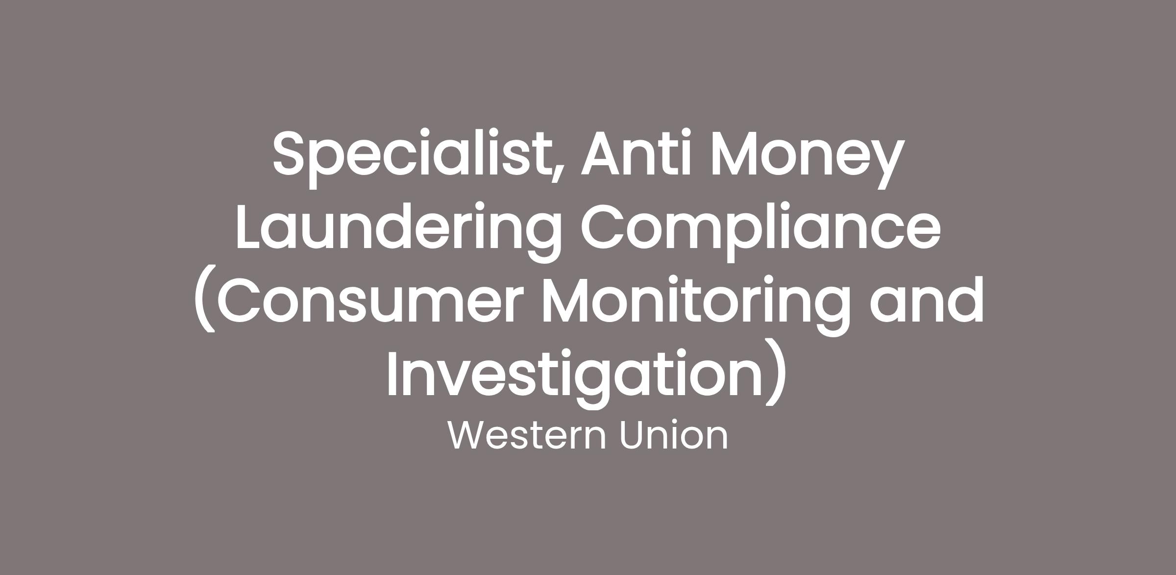 Are you looking to play a key role in helping tackle money laundering and other financial crime? Are you ready to unleash your potential in a global business that is committed to moving money for better? Are you interested in joining a globally diverse organization where our unique contributions are recognized and celebrated, allowing each of us to thrive? Then it’s time to join Western Union as a Specialist, Anti-Money Laundering Compliance.