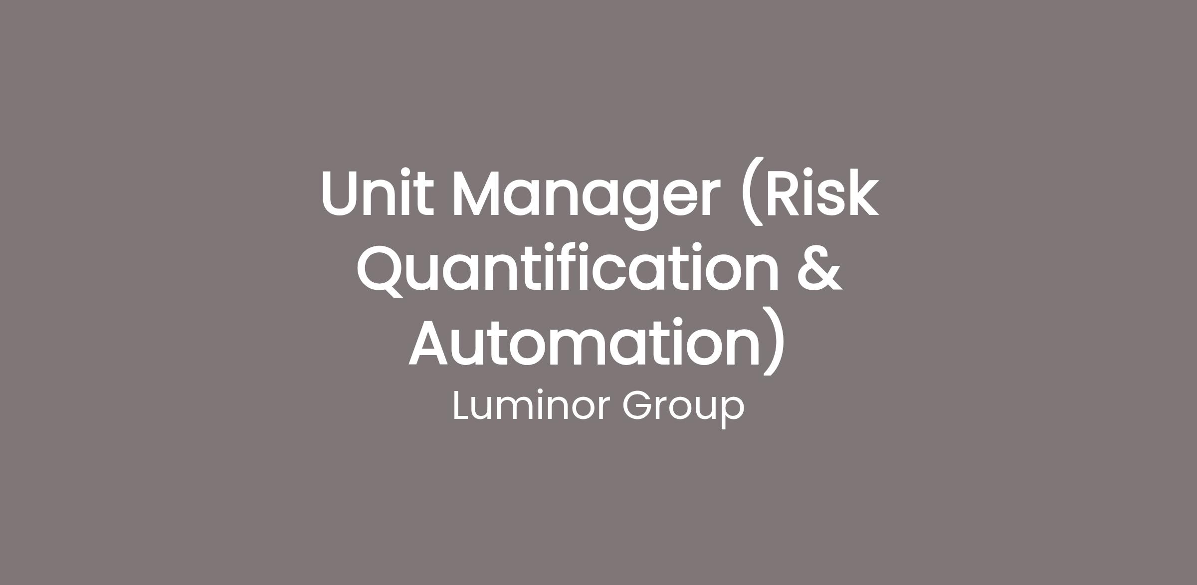 You would be joining as a Unit Manager in the Enterprise Risk Management Department within the Risk Division.